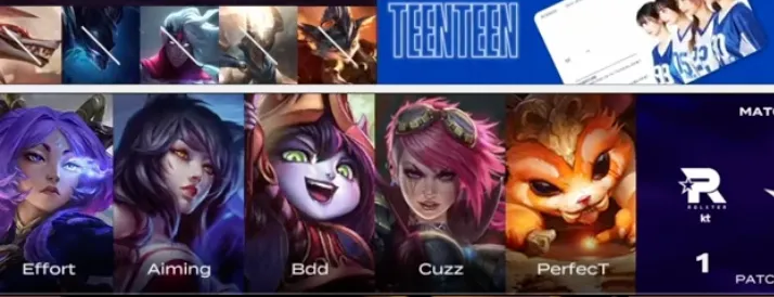 KT选用:PerfecT、Cuzz蔚、Bdd狐狸、Aiming芸阿娜、Effort璐璐